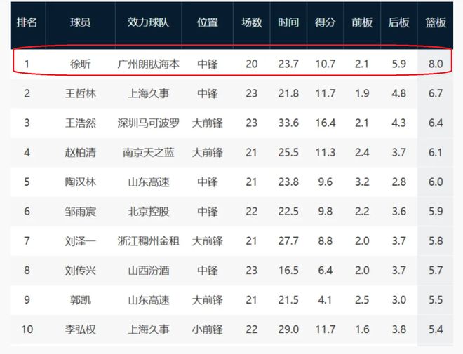 如今的徐昕,在广州队已经坐稳了第一中锋的位置,几乎每一场比赛打首发,场均可以交出10.7分8篮板2.1盖帽的全面数据。其中,场均2.1盖帽,排在CBA第一位。场均8个篮板,排在CBA本土球员第一。