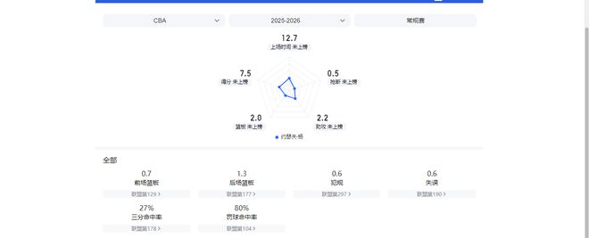 高阶数据方面,他的每百回合有效率命中率、三分命中率仅超过了19%、17%的同位置球员,他这样的表现有失外援水准。
